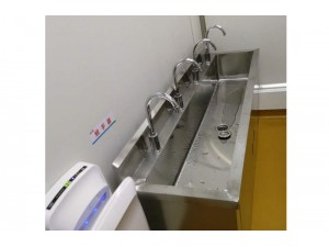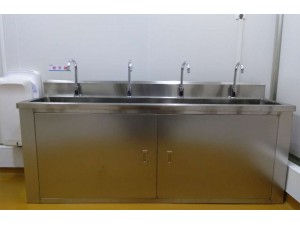 洗手池是手术医务人员洗手专用设备,采用人体感应自动给水,因此无需使用人员触摸,保证清洁,流量500l/h,采用0.1μm超滤膜,可将至毒病菌全部滤掉,同时采用双柱超滤组件,具备反冲技术,可长期使用。 特点: 1.整体采用不锈钢SUS304、1.2mm不锈钢双层制造,中间特殊静音处理。槽身以人体工程学设计,外观美观,且洗手时水花不会溅在身上。 2.鹅颈型水龙头,全自动感应或脚踏、腿部触碰几种给水方式,避免医护人员的手部碰触,有效防止洗手时的交叉感染。 3.配备40-50L热水器和恒温供水装置,水温可根据客户的使用习惯20°—75°自由设定。 4.水池内部采用圆弧角度、无缝焊接、深度打磨、抛光处理。无死角、易于清洁消毒处理,有效防止细菌滋生。 5.配套设备完善,配有自动给药机,照明灯及防雾整装镜辅助设备。 6.多种型号、多个系列产品可供客户选择,也可根据客户的使用要求生产加工。