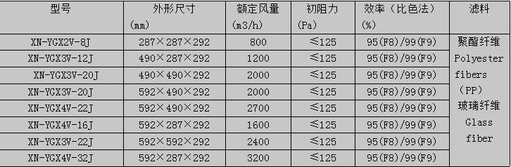 F系列中效空气过滤器分袋式和非袋式两种,其中袋式包括F5,F6,F7,F8,F9,非袋式包括FB(板式中效过滤器),FS(隔板式中效过滤器),FV(组合式中效过滤器)。