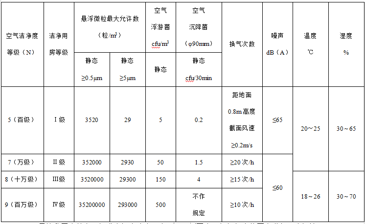 建议等级 10万级-100级(按照生产工艺和卫生、质量要求,划分洁净级别)